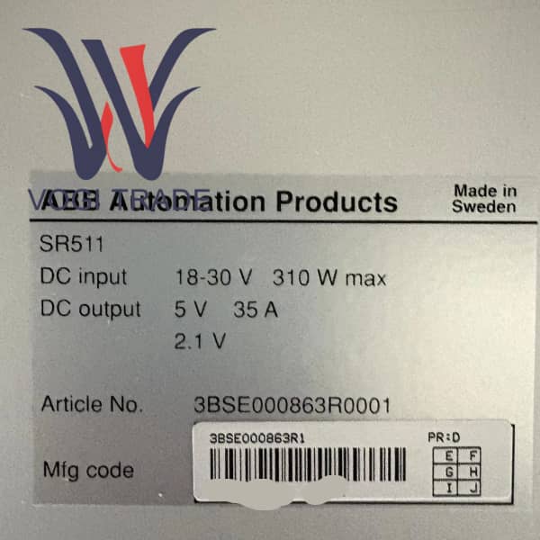 SR511 adalah komponen manajemen daya presisi dalam sistem kontrol proses terdistribusi ABB Advant Master. 3BSE000863R1 didefinisikan sebagai "Regulator 24V/5V". Fungsi intinya adalah untuk mengubah dan menstabilkan catu daya utama +24V DC yang disediakan oleh sistem menjadi tegangan +5V DC, untuk memasok sirkuit logika digital dalam sistem Advant Master yang memiliki persyaratan kualitas daya yang sangat tinggi.