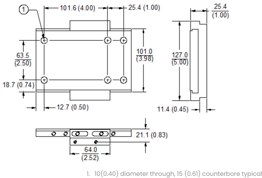 Lebar minimum 89,4 mm (3,52 in) ditambah tambahan 3,05 mm (0,12 in) clearance diperlukan untuk pelepasan.