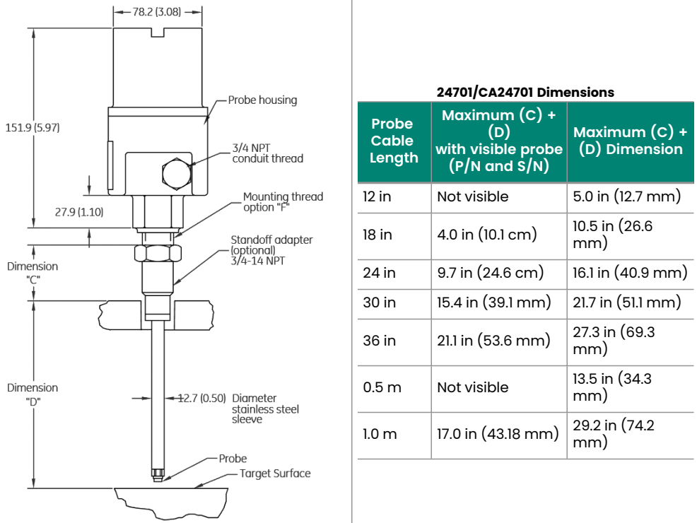 Panjang lengan probe: Panjang penetrasi probe adalah 8,3 in (211 mm).