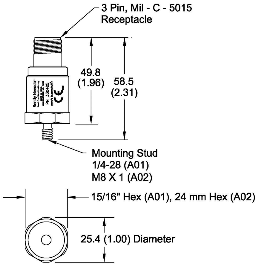 Bently Nevada 330400-02-CN menggunakan kabel sinyal stopkontak atas yang dilengkapi konektor tiga pin untuk memudahkan akses, sedangkan desain stud integral M8 x 1 bawah beradaptasi dengan berbagai skenario pemasangan.