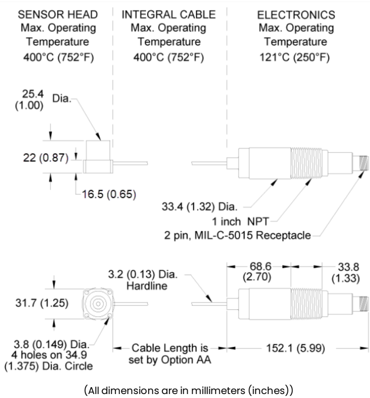 Elemen penginderaan dan elektronik pengkondisi sinyal dipisahkan dan dihubungkan secara permanen melalui kabel kaku terintegrasi untuk mencegah kegagalan konektor.