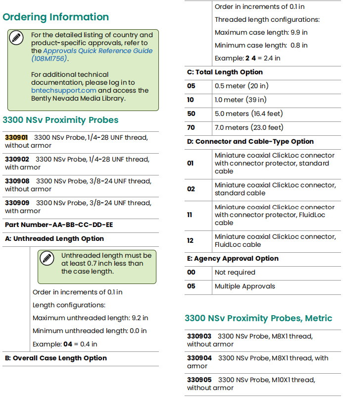 Probe 330901 secara mekanis dan dapat dipertukarkan dengan probe dan kabel ekstensi dari sistem RAM 3300 Bently Nevada sebelumnya. Saat mengupgrade dari sistem 3300 RAM ke sistem 3300 XL NSv, probe dan kabel ekstensi yang ada dapat terus digunakan.