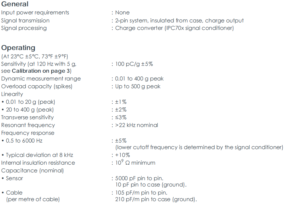 CA202 144-202-000-116 memiliki sensitivitas setinggi 100 pC/g dan rentang respons frekuensi yang luas, dari 0,5 Hz hingga 6.000 Hz (±5%). Sensitivitas tinggi dapat secara tepat mengukur getaran dengan amplitudo yang sangat rendah, yang sangat penting untuk deteksi dini kesalahan pada mesin yang berputar seperti turbin dan kompresor. Rentang frekuensi yang lebar memastikan pergerakan mekanis yang sangat lambat dan getaran frekuensi sangat tinggi dapat ditangkap, seperti yang disebabkan oleh cacat penyatuan roda gigi atau bantalan, sehingga memberikan pemahaman komprehensif tentang kondisi kesehatan alat berat.
