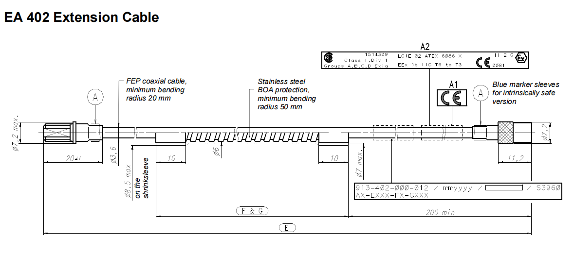 Kabel EA402 Exi sendiri tidak "menghasilkan" keselamatan sebagai penghubung utama dalam rangkaian pembatas energi, tetapi merupakan komponen dari keseluruhan rangkaian yang secara intrinsik aman. 913-402-000-013-A1-E050-F0-G000 harus bekerja bersama dengan preamplifier IQS 452. Preamplifier mengintegrasikan sirkuit pembatas tegangan, pembatas arus, dan isolasi secara internal. Sirkuit ini membatasi energi dari zona aman ke tingkat yang sangat rendah dan kemudian mengirimkannya ke probe TQ yang terletak di zona bahaya melalui kabel EA402.