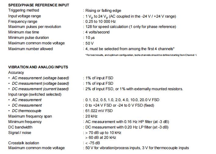 4 saluran pertama dapat dipilih sebagai tacho atau dinamis (mis. Getaran) dan 12 terakhir dapat dipilih sebagai dinamis atau proses