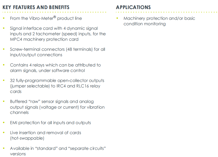 Akses sinyal sensor, melalui J1 dan J2, dapat menghubungkan hingga 4 sensor arus eddy dan 2 sensor kecepatan putaran, menjadi dasar untuk pemantauan komprehensif terhadap mesin berputar besar.