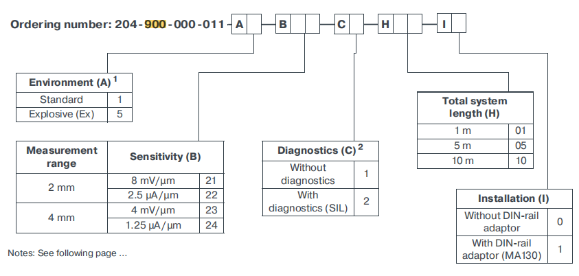 B23 Menentukan rentang pengukuran dan sensitivitas. B23 mewakili rentang pengukuran linier 4 milimeter, dengan sinyal keluaran dalam mode tegangan dan sensitivitas 4 mV/μm. Artinya untuk setiap 1 mikron target bergerak, tegangan keluaran berubah sebesar 4 milivolt.